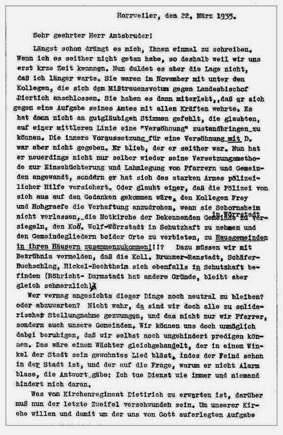 Der Briefausschnitt aus der Abbildung zeigt seine Haltung.